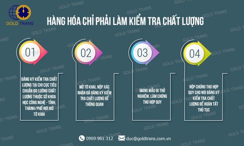 - Khi hàng về đến cảng → đăng ký Kiểm tra chất lượng (KTCL) tại Chi cục Tiêu chuẩn đo lường chất lượng ( TCĐLCL) tại Tỉnh/Thành phố nơi mở tờ khai